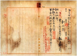 四八 台中庁東勢角支庁在勤台中庁警部兼技手飯島幹太郎ハ疾病ニ罹リ職ニ堪ヘサル旨ヲ以テ辞職願ニ依リ昇級ノ上本官並兼官ヲ免シ事務格別勉励ニ付キ一時金ヲ賞与ス