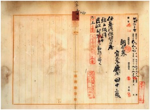 六〇 台湾総督府民政部総務局長中村是公ノ内申ニ依リ宜蘭庁属田中三熊ヲ台湾総督府属ニ任シ民政部総務局勤務ヲ命ス
