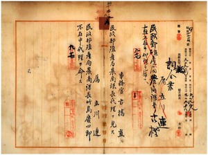 八 台湾総督府民政部殖産局長代理古橋直ノ具申ニ依リ台湾総督府事務官古橋直ノ民政部殖産局農商課長代理ヲ免シ、台湾総督府属立川連ニ民政部殖産局農商課長竹島慶四郎ノ不在中ノ代理ヲ命ス