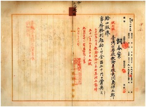 五三 台北庁錫口公学校勤務台湾公学校教諭兼校長川島伊三郎ハ麻剌利亜疾病ニ罹リ転地療養中当分全治ノ見込ナキニ付キ職ニ堪ヘサル旨ヲ以テ昇級ノ上事務格別勉励ニ付キ賞与シ本官並ニ兼官ヲ免ス