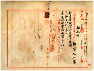 七〇 台南郵便電信局長速水経憲ノ上申ニ依リ通信事務員相賀仁三郎ヲ台湾総督府通信書記補ニ任シ台南郵便電信局勤務ヲ命ス