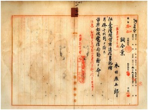 七一 苗栗郵便電信局長鈴木重嶽ノ内申ニ依リ通信助手木田辰五郎ヲ台湾総督府通信書記補ニ任シ苗栗郵便電信局勤務ヲ命ス