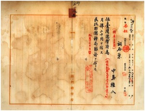 八五 台湾総督府民政部総務局長中村是公ノ内申ニ依リ台湾総督府雇中島権八ヲ台湾総督府属ニ任シ民政部総務局勤務ヲ命ス