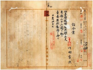 一八 台南監獄長高屋常三郎ノ内申ニ依リ台南監獄看守川田富次ヲ台湾総督府監獄監吏ニ任シ台南監獄勤務ヲ命ス