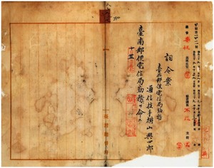 八七 台湾総督府台南郵便電信局長速水経憲ノ上申ニ依リ台北郵便電信局勤務台湾総督府通信技手横山与四郎ニ台南郵便電信局勤務ヲ命ス