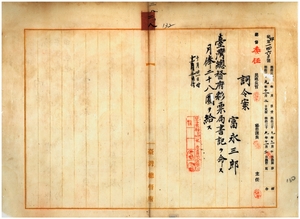 二八 台湾総督府彩票局長宮尾舜治ノ内申ニ依リ富永三郎ニ台湾総督府彩票局書記ヲ命ス