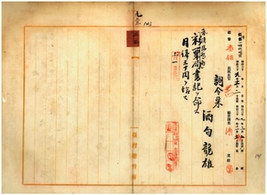 三三 台湾総督府彩票局長宮尾舜治ノ内申ニ依リ酒勾龍雄ニ台湾総督府彩票局書記ヲ命ス