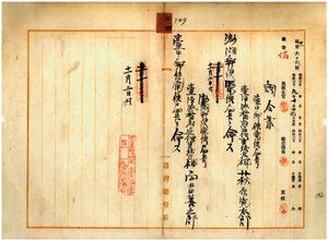 通信事務官補萩原寬太郎ニ澎湖郵便電信局長ヲ同向井田善五郎ニ臺中郵便電信局長ヲ命スル件