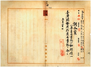 三七 台湾総督府彩票局長宮尾舜治ノ内申ニ依リ台湾総督府専売局書記加部信一ニ台湾総督府彩票局書記ヲ命ス