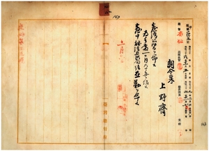 四〇 台湾総督府民政部警察本署長代理参事官大津麟平ノ具申ニ依リ元医師医務嘱託ノ上野斉ニ台湾公医ヲ命シ台中庁塗葛堀在勤ヲ命ス