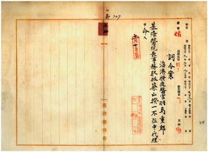 五四 台湾総督府民政部警察本署長代理参事官大津麟平ノ内申ニ依リ海港検疫医官羽島重郎ニ基隆医院長事務取扱築山揆一不在中ノ代理ヲ命ス