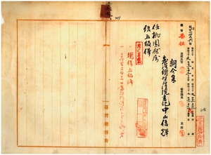 五六 桃園庁長津田毅一ト覆審法院長鈴木宗言ノ内申ニ依リ台北地方法院台中出張所詰台湾総督府法院書記中山信輝ヲ桃園庁属ニ任ス