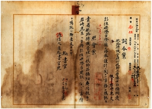 一九 台湾総督府民政部土木局長心得長尾半平ノ内申ニ依リ航路標識管理所ノ技師工学博士石橋絢彦ト技手岩崎虎夫ニ台湾総督府彭佳嶼灯台籠及灯器ノ設計ニ関スル事務ヲ嘱託ス(詞令案には岩崎虎夫の名前は朱線で抹消されている)