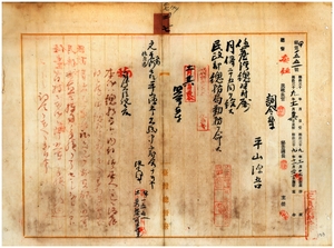 二七 総務局長代理持地六三郎ノ内申ニ依リ元千葉県佐原区裁判所書記平山源吾ヲ台湾総督府属ニ任シ民政部総務局勤務ヲ命ス