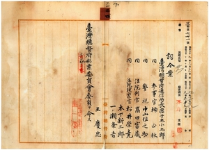 三四 台湾総督府彩票局長宮尾舜治ノ内申ニ依リ台湾総督府通信局長鹿子木小五郎、同参事官楠正秋、同警視中山佐之助、同法院判官高田富蔵、同法院検察官ノ松井栄堯・木下新三郎・一ノ瀬粂吉・王慶忠ニ台湾総督府彩票委員会委員ヲ命ス