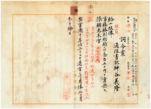 三 台湾総督府民政部通信局勤務台湾総督府通信書記神谷義隆ハ疾病ニ罹リ職ニ堪ヘサル旨ヲ以テ辞職願ニ依リ事務格別勉励ニ付キ一時金ヲ賞与シ本官ヲ免ス