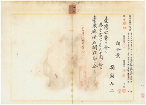 一八 台湾総督府民政部警察本署長代理参事官大津麟平ノ具申ニ依リ元陸軍三等軍医指宿七二ニ台湾公医ヲ命シ台東庁璞石閣勤務ヲ命ス