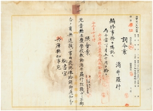 二二 台湾総督府民政部総務局長心得持地六三郎ノ内申ニ依リ元兵庫県立農学校教諭満井羅什ニ編修事務ヲ嘱託ス