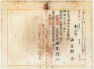 二九 台湾総督府民政部通信局長鹿子木小五郎ノ内申ニ依リ郵便電信学校卒業生山室狷介ヲ台湾総督府通信書記ニ任シ民政部通信局勤務ヲ命シ台北郵便電信局兼務ヲ命ス