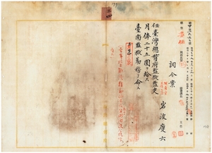 三四 台南監獄長典獄志豆機源太郎ノ内申ニ依リ台南監獄看守岩波慶六ヲ台湾総督府監獄監吏ニ任シ台南監獄勤務ヲ命ス