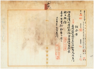 五三 台中庁長佐藤謙太郎ノ内申ニ依リ台湾総督府国語学校教諭加藤元右衛門ヲ台湾公学校教諭兼校長ニ任シ台中公学校勤務ヲ命ス