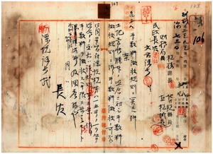 七一 明治三九年府令第二一号手数料徴収規則制定ニ伴フ手数料徴収ノ取扱方ニ関シ台湾総督府民政長官代理総務局長中村是公ヨリ通達及ヒ深坑庁長丹野英清ヨリ照会ノ件