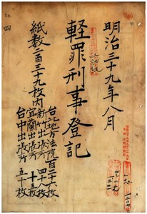 明治三十九年八月分輕罪刑事登記(台北地方法院、新竹出張所、宜蘭出張所、台中出張所)