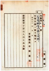 宜蘭廳告示第百二號臺北廳ヨリ豚虎列剌發生通知ノ件