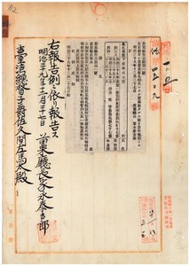 苗栗廳告示第百一號煙草小賣營業鑑札燒失屆ノ件