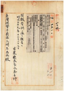 苗栗廳告示第百二號獸疫ニ關シ臺北廳ヨリ通知ノ件