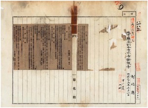 五〇 第五六号 斗六庁管内ニ流行シタ牛疫熄滅ニ付キ牛羊属ノ出入及病毒伝播ノ虞アル物品ノ輸出入ヲ停止シタル処置ヲ解除スル旨同庁ヨリ通知ノ件(明治四〇年民総第八一八五号)