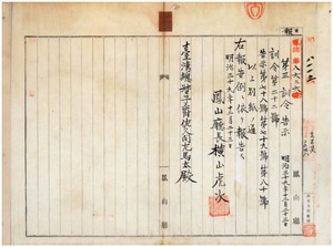 一一一 第二二号 明治三九年七月訓令第一三号第一号表第一項末尾ニ「及無給嘱託員」ヲ追加ノ件(明治四〇年民総第八一一五号)
