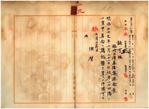 一一 臨時台湾基隆築港局長後藤新平ヨリ稟申ノ基隆築港局ニ嘱託医設置ノ儀ニ付キ認可ノ件
