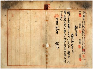 六〇 台湾神社宮司山口透ヨリ稟申ノ総督府土木局技手落合三男次ニ同社営繕事務嘱託ノ件認可ス