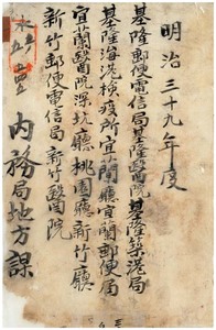 一 基隆郵便電信局官有財産異動報告ノ件(1906-08-25~1907-09-10);基隆医院官有財産異動報告ノ件(1907-04-01~1907-04-08);臨時台湾基隆築港局官有財産異動報告ノ件(1906-03-01~1907-10-22);基隆海港検疫所官有財産異動報告ノ件(1906-06-30~1907-10-19);宜蘭庁官有財産異動報告ノ件(1906-02-26~1907-08-17);宜蘭郵便電信局官有財産異動報告ノ件(1906-05-03~1907-07-23);宜蘭医院官有財産異動報告ノ件(1907-05-15~1907-05-29);深坑庁官有財産異動報告ノ件(1906-06-01~1907-08-06);桃園庁官有財産異動報告ノ件(1906-06-01~1907-11-06);新竹庁官有財産異動報告ノ件(1906-04-30~1907-08-30);新竹郵便電信局官有財産異動報告ノ件(1906-06-15~1907-06-26);新竹病院官有財産異動報告ノ件(1907-06-06~1907-07-18);阿緱庁官有財産異動報告ノ件(誤綴の可能性あり)(1909-04-13~1909-04-27)