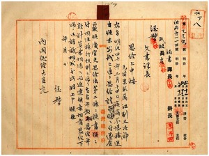元苗栗廳屬江副又次郎ニ恩給下賜ノ儀上申該證書交付ノ件