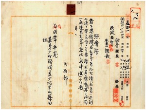元嘉義廳警部石田常平ニ恩給下賜ノ儀上申該證書交付ノ件