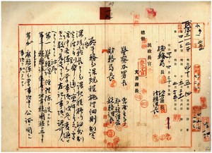 一八 深坑庁ヨリ稟申ノ同庁事務分課規程施行細則制定及ヒ同細則中改正ノ儀認可ノ件(指令第一七七四号・第二九八五号)