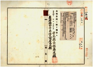 五九 第二六号 台北庁大加蚋堡大稲花蘆竹脚街葉文振ハ煙草仲売捌営業鑑札遺失ニ付キ該鑑札ヲ無効トス