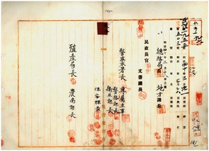 六五 台北庁・新竹庁・台南庁・蕃薯椙庁・阿緱庁ノ告示、基隆庁・蕃薯椙庁ノ庁令、基隆庁ノ告諭供閲ノ件(1907-03-18~1907-03-28);第三二号 台北庁直轄ノ陳綢・陳維訓・鄭火・湯戯・周作・鄭呈祥・陳雲瑞・張雲隆・陳其海・王標・徐高氏王・胡寅・許宜・楊氏粉・李炳・郭港・陳渓嘩・呉炎・林氏夏・蔡氏留・童泉・楊丁原・周氏満・林鈿・蔡氏梅・李金釣・周頭北・注水、士林支庁管内ノ杜象・葉烏杉・陳栄宗・洪登・謝金獅・頼氏心・郭氏菊、新庄支庁管内ノ李添興・傴三都・詹来福・徐紅紀・趙査牡・邵窓明、枋橋支庁管内ノ徐林氏柳・林東欅・張友朋、滬尾支庁管内ノ王氏貴・黄樹・江皆再・郭氏市・陳水来・周金俊・李龍ノ阿片烟膏購買吸食特許鑑札亡失ニ付キ該鑑札ヲ無効トス(1907-03-15~1907-03-28)