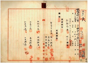 一一六 台北庁・宜蘭庁・深坑庁・台中庁・塩水港庁ノ告示、基隆庁ノ訓令、深坑庁ノ庁令供閲ノ件(1907-06-26~1907-07-09);第八三号 台北庁直轄ノ林氏晟・劉英・陳干・戴氏桂・潘正・邵友得・呉昌伝・呉友賢・陳茂通・陳矮・陳樹・王金木・張炎熈・沈養成・沈滾泉・蘇頭北・張陳春・呉虎・詹氏干凉・廖天賜・江蹇・陳四正・黄魁・高心従・呉敲・李班英・洪慈・陳秉国・許氏密凉、士林支庁管内ノ柯振興・鄭苙魚・郭全福・李港泉・何伝木・曹興孔・高意・陳全吉・郭登山、錫口支庁管内ノ陳頭北・許金効・梁篇・郭阿薯、新庄支庁管内ノ陳能通・陳有成・王宗定・廖氏惜・李石野・林氏敦、枋橋支庁管内ノ曽汝懐・何炎・魏交・葉漑・陳玉山、滬尾支庁管内ノ張水来・沈環・陳金龍(1907-06-21~1907-07-09)