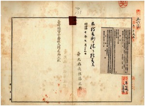 一三一 第九八号 台北庁大加蚋堡頂内埔庄台湾総督府農事試験場ニ於テ続発セル牛炭疽病ハ更ナル発生ナキニ付キ健牛ノ隔離並該場用地人畜ノ交通遮断ヲ解除スル旨同場長ヨリ通知ノ件