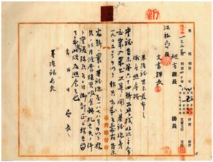 一三四 基隆庁・深坑庁・斗六庁・塩水港庁ノ告示供閲ノ件(1907-08-12~1907-08-22);第六五号 基隆庁管内ノ基隆公学校・暖暖公学校・瑞芳公学校・水返脚公学校・金包里公学校・頂双渓公学校・頂双渓公学校槓仔椙分校ノ明治三九年度歳入歳出決算ノ件 (1907-07-15~1907-08-22)
