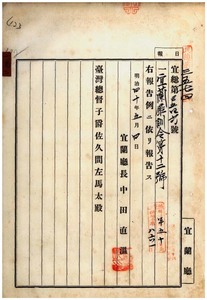 一九二 第一二号 宜蘭庁判任官定員中改正ノ件