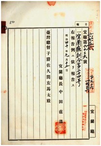 九 第二四号 明治三九年九月宜蘭庁訓令第三五号警察報告例別冊中改正ノ件