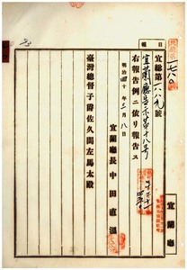 宜蘭廳告示第十八號基隆廳下ニ豚虎列拉發生其區域內ニ牛疫ノ出入等禁止
