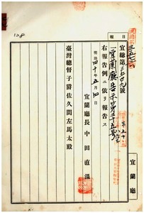 四七 第三五号 桃園庁・基隆庁両管内ニ豚虎列刺発生及ヒ台北庁管内ニ牛疫発生ニ付キ各管轄庁ヨリ通知ノ件