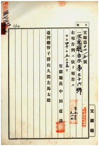 四八 第三六号 深坑庁・桃園庁両管内ニ豚虎列刺発生ニ付キ両庁ヨリ通知ノ件