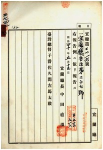 四九 第三七号 宜蘭庁利沢簡堡ノ蘇澳庄・利沢簡庄・頂清水庄・下清水庄・隆恩庄・猴々庄・成興庄、羅東堡ノ羅東街・武淵庄・月眉庄・阿里史庄・打那岸庄・滕橄社庄・十八埒庄・埔城地庄、茅仔椙堡ノ四百名庄・大埔庄・一百甲庄、二結堡ノ二結庄・下三結庄・下五結庄・中一結庄・中二結庄、紅水溝堡ノ員山庄・順安庄・大和庄・鹿埔庄・打那美庄、民壮囲堡ノ謙后庄・壮二庄ニ豚虎列刺発生ノ件