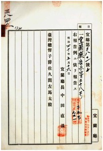 五〇 第三八号 明治三八年五月宜蘭庁告示第六〇号警察官吏派出所名称及管轄区域中追加ノ件